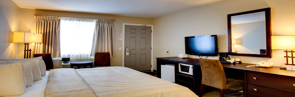 One king bed with full size kitchen suites, private bathroom. Rooms have a full size stove/oven, full size fridge and a keurig coffee brewer.
